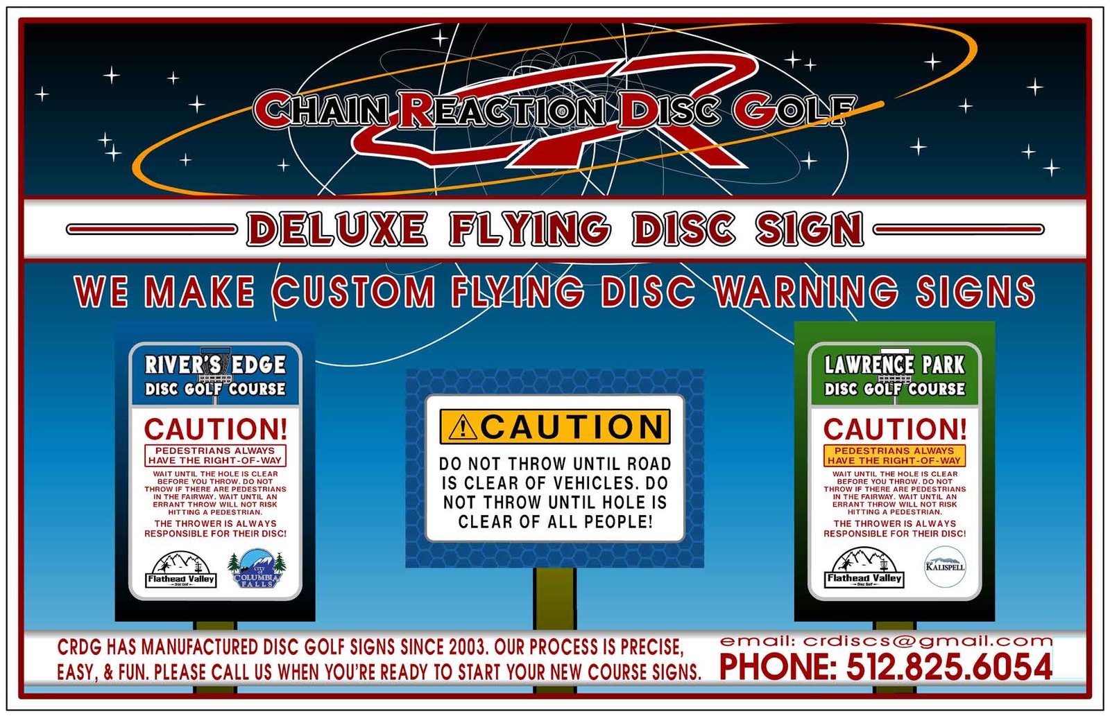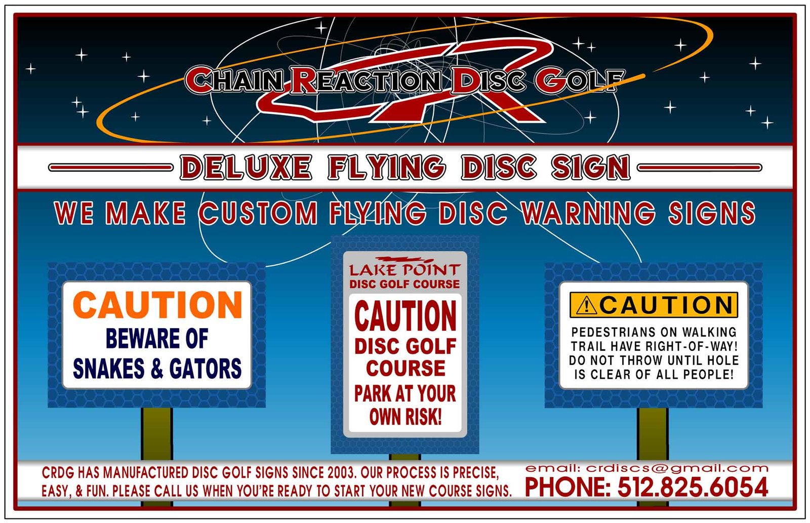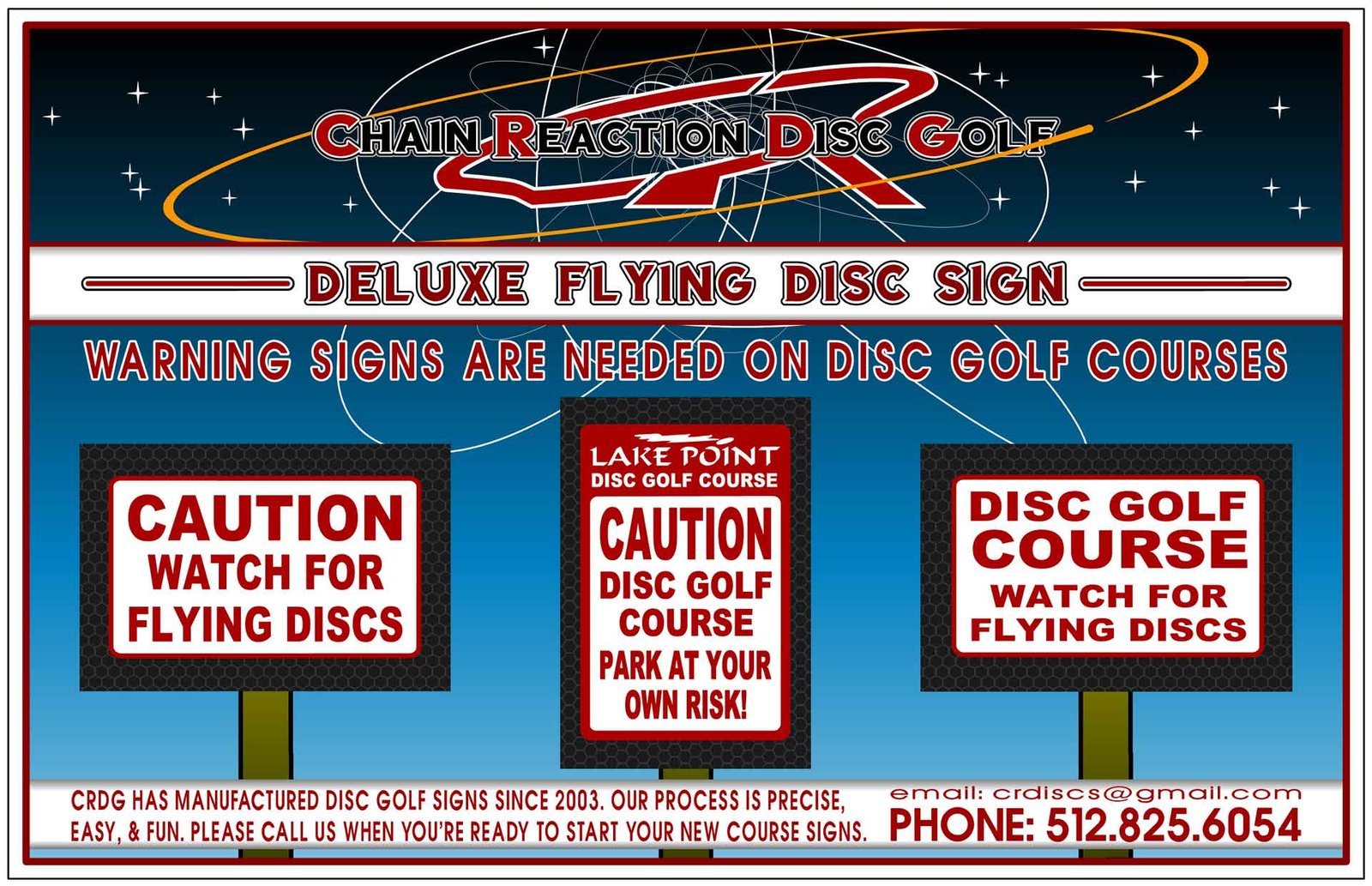 To avoid mistakes or typos; we recommend contacting us before ordering your signage. We will make your SIGN ORDER very easy from start to finish. Please call us at: 512.825.6054 or Contact-Us for instructions that explain our easy sign process. We will custom design FLYING DISC signs for your course and the process will be easy & quick.