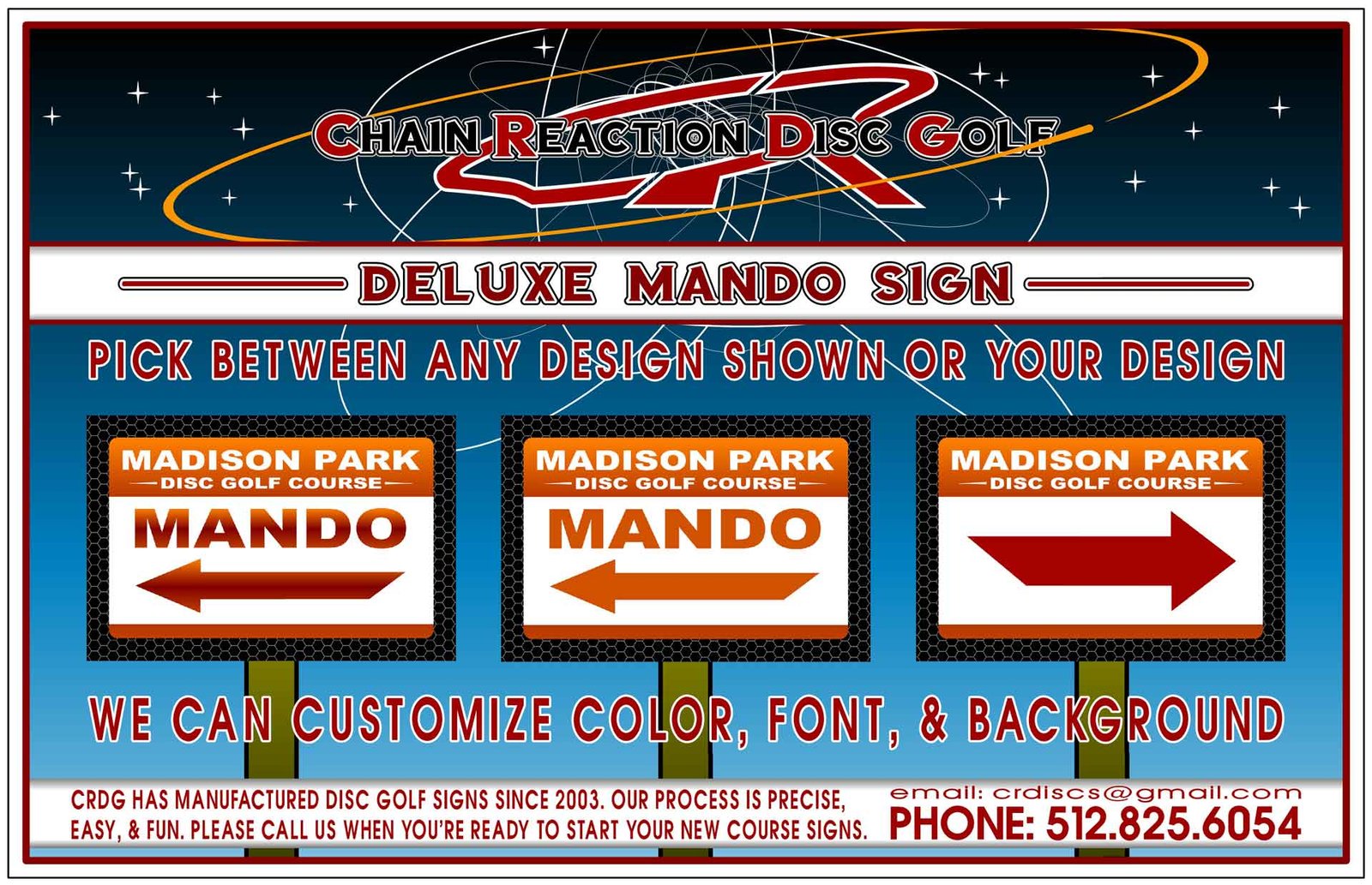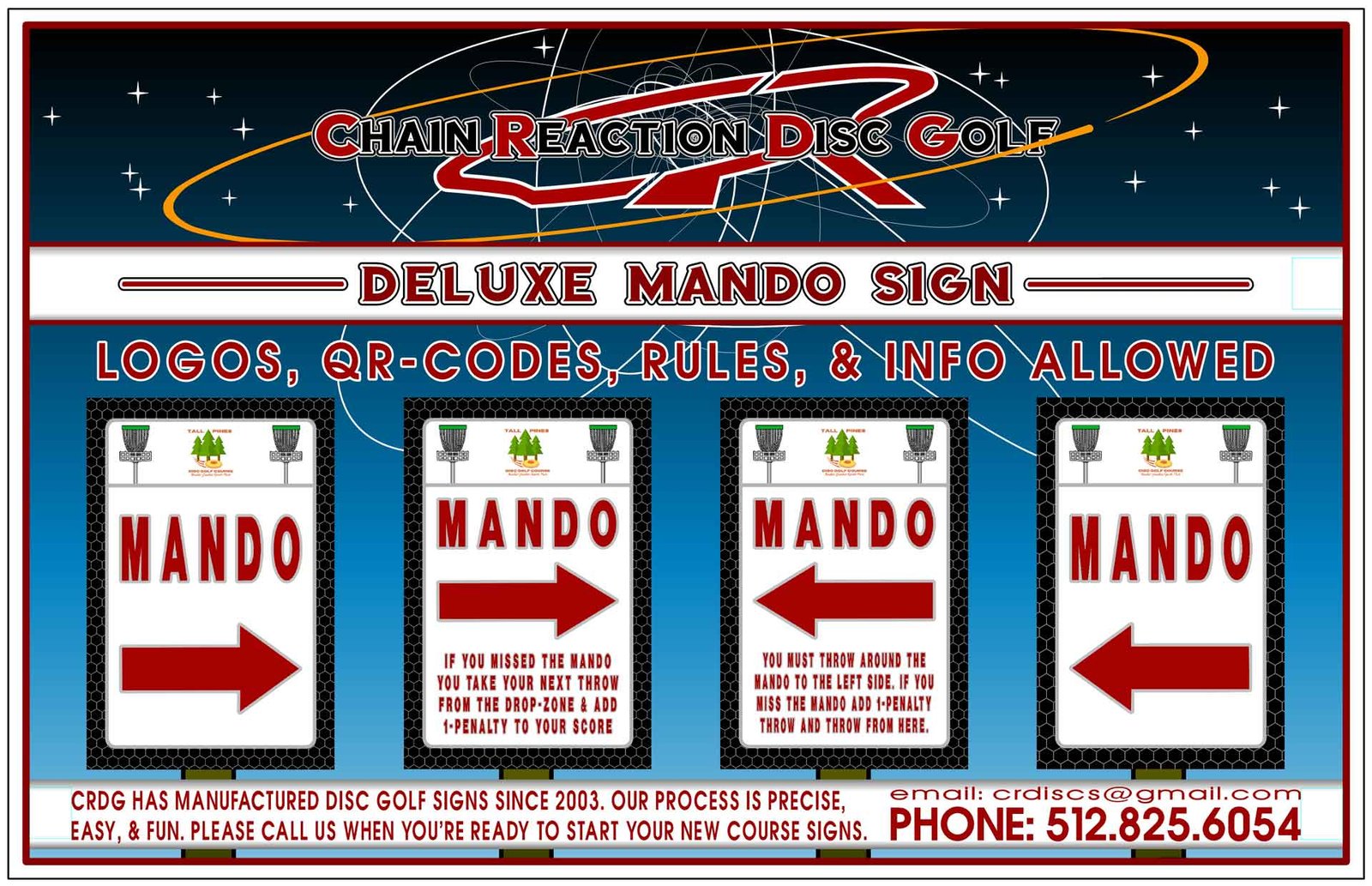 CRDG makes the SIGN PROCESS very easy from start to finish. Please call us at: 512.825.6054 or Contact-Us for instructions that explain our easy sign process. We will custom design Mando signs for your course and the process will be quick.